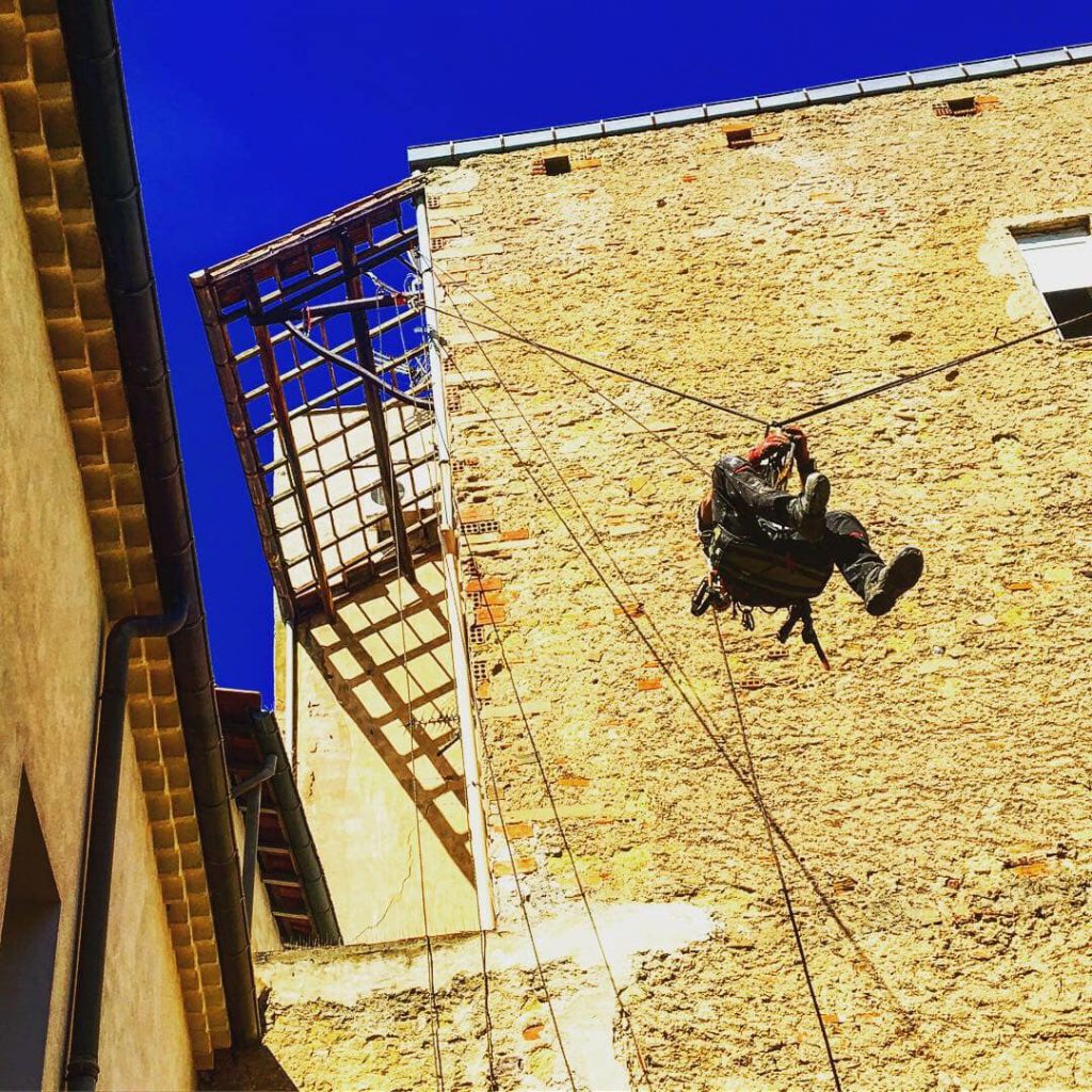 Démontage de toiture avec évacuation sur tyrolienne guidée
