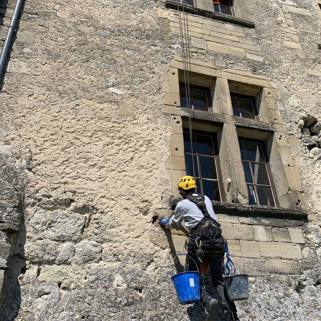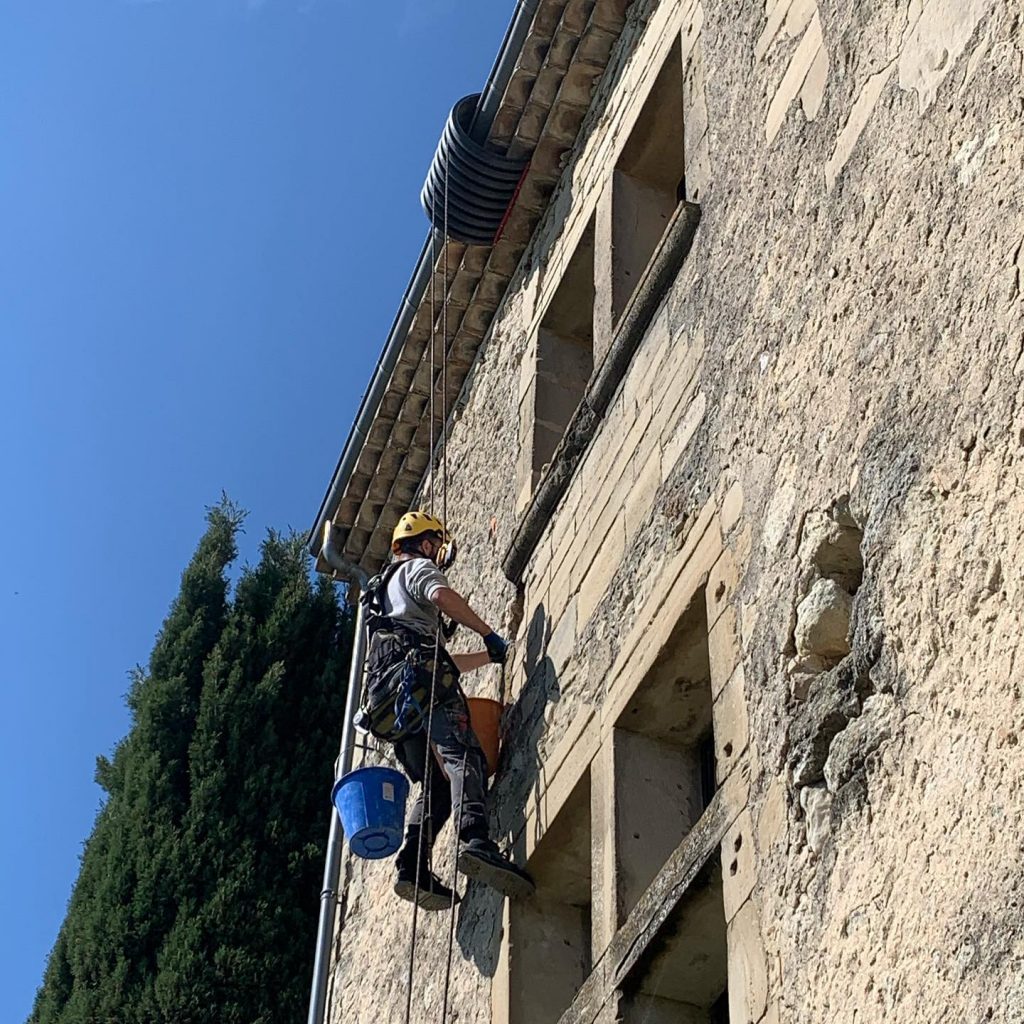 - Reprise de joint sur support en pierre, cheminée, monument historique