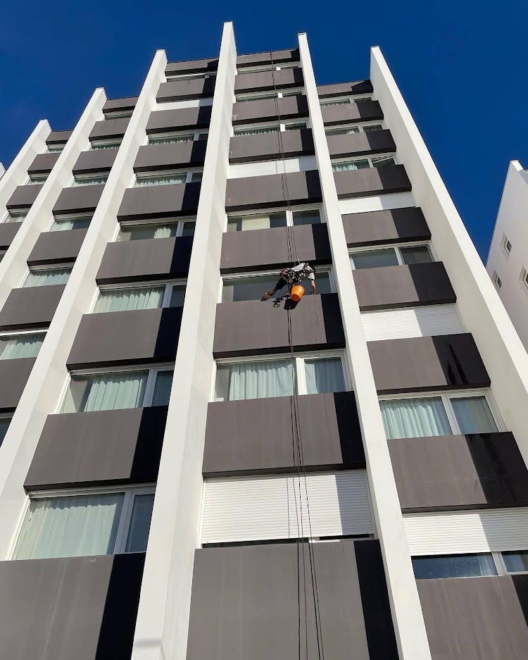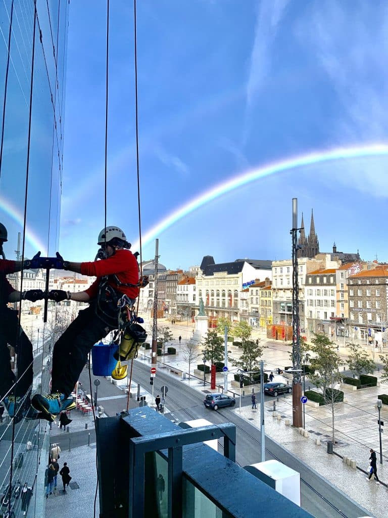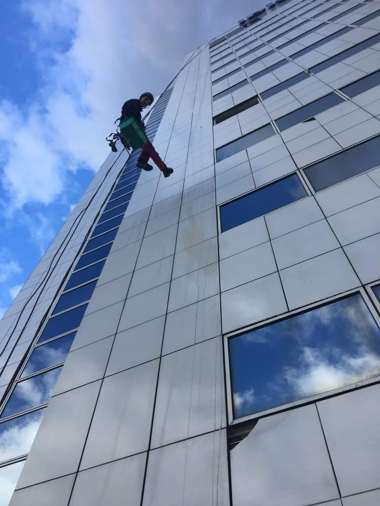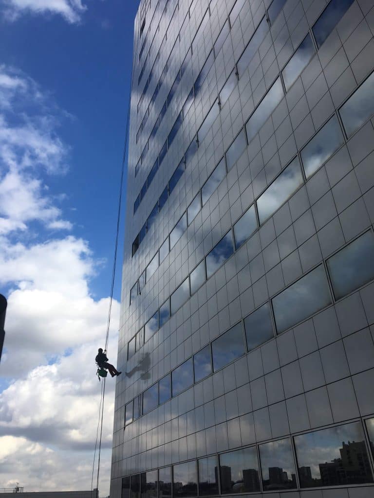 Les cordistes d’Alt’accro Services sont des spécialistes du nettoyage et de l’entretien des façades des immeubles de grande hauteur